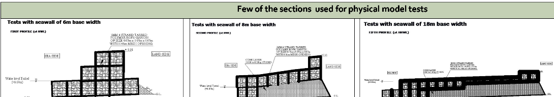 - Determination of safe crest height (or level) of the seawall sections.